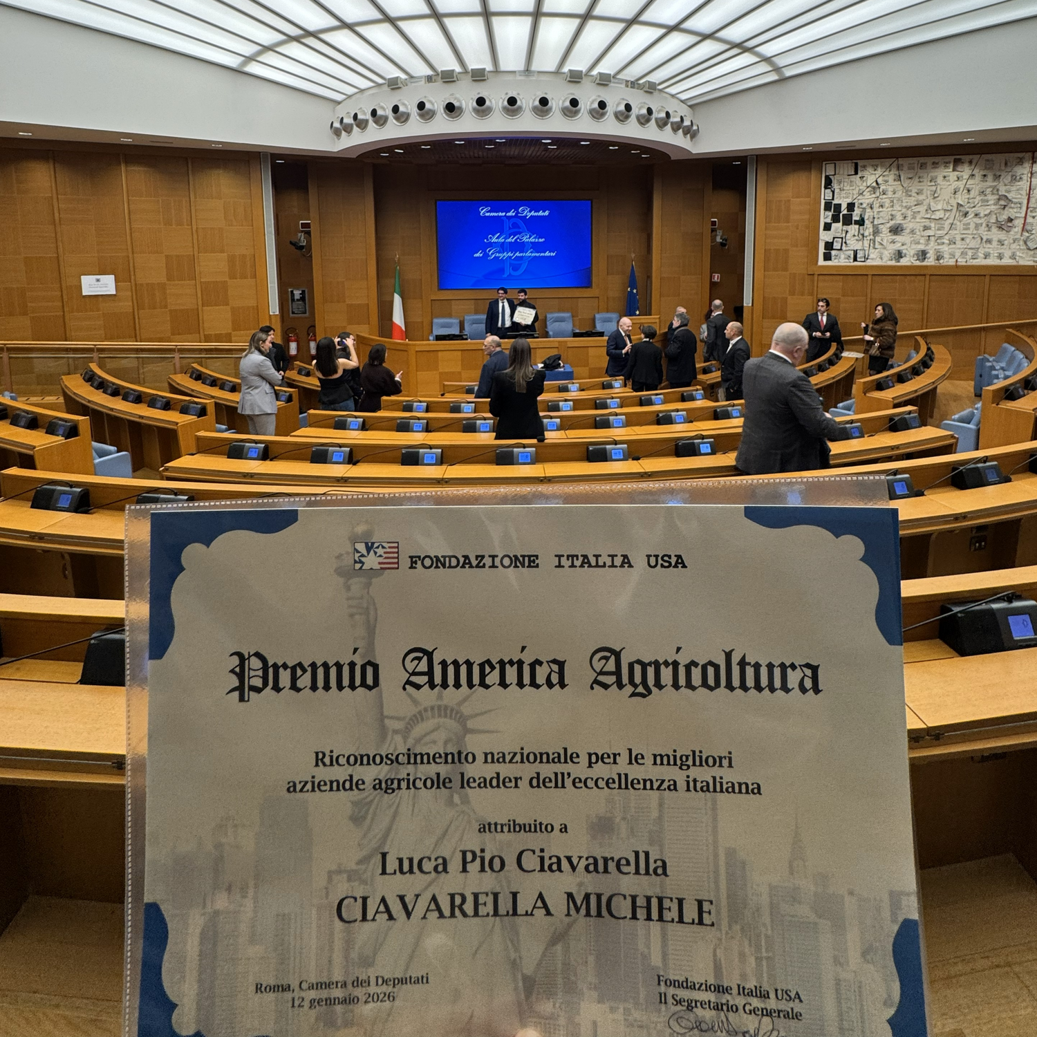 Siamo orgogliosi di annunciare che lunedì 12 gennaio 2026 la nostra azienda agricola è stata ospite presso la Camera dei Deputati del Parlamento Italiano, a Roma, in occasione della cerimonia ufficiale dedicata ai vincitori del Premio America Agricoltura.